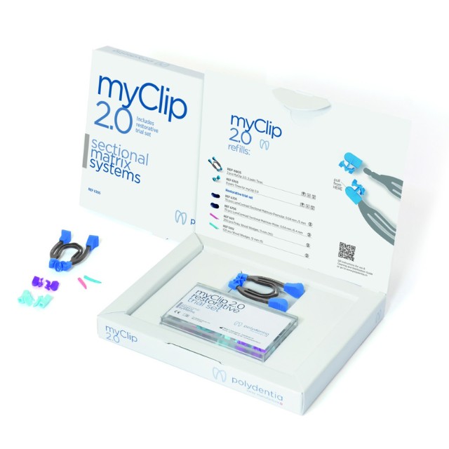 Complete sectional matrix system kit developed to offer strong tooth separation in order to create excellent contact points in the restoration of Class II cavities. This kit features myRing Forte, a sectional matrix ring that adapts to both teeth of different crown heights and wide cavity preparations, thanks to the its extremities (myTines Small, myTines Medium and myTines Large). In case of dissimilar tooth morphologies, the autoclavable and replaceable myTines can be used interchangeably to enhance matrix adaptation.